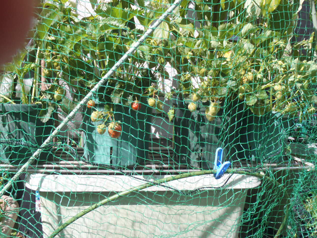 敵機直上急降下〜での一撃に備え、日没から翌朝のおいらが目覚めるまでは虫除けネットで上部を覆います。