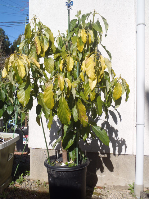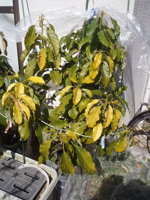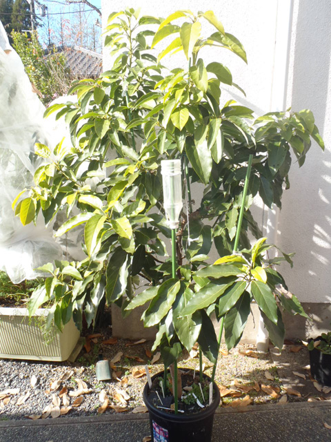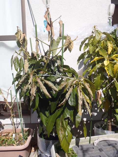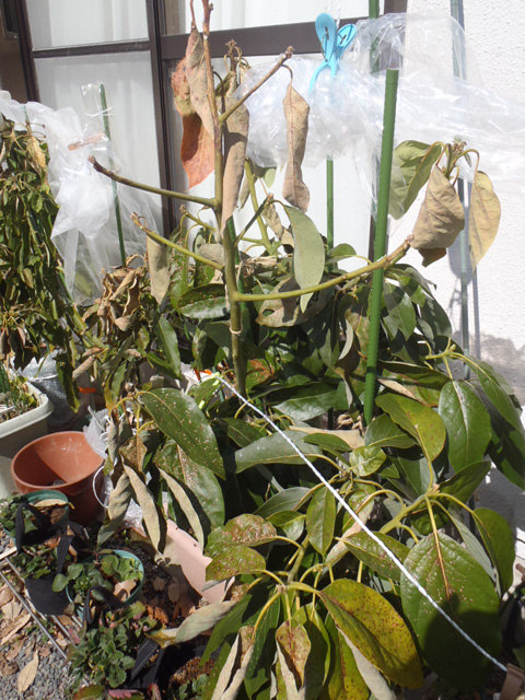 アボカド(ベーコンとメキシコーラ)の防寒(冬越し)の様子です。