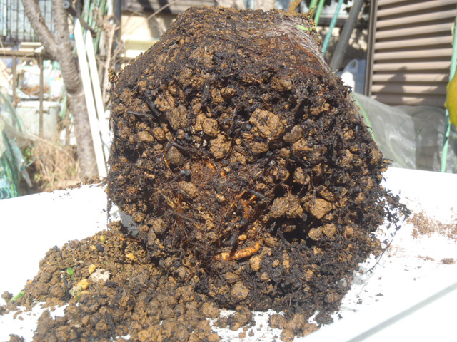 ただ、根をほぐしている時に特大のコガネムシお幼虫が1匹落ちてきた。