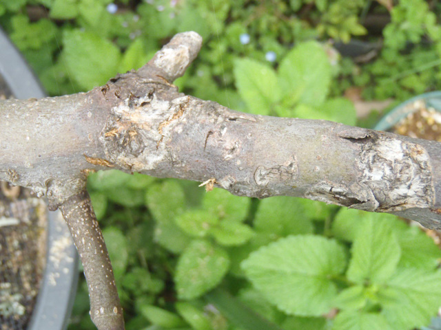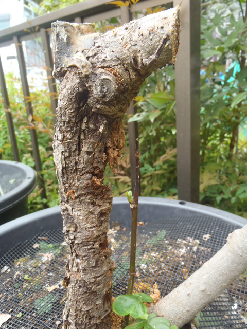 カミキリ虫との毎年の激戦で、ボロボロになっていますが生きのびています。