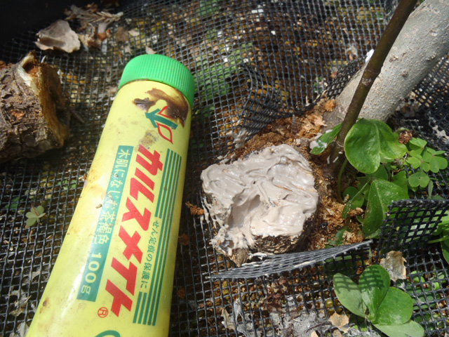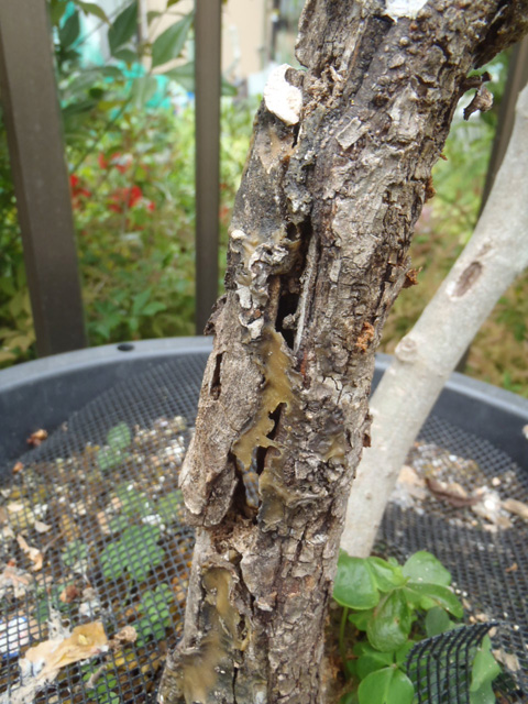 さすがにマズイと思い、幹の穴から注入し幼虫をやっつける薬を購入しました。