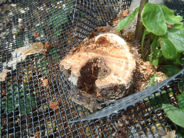 | 切り株には大穴があいてました |