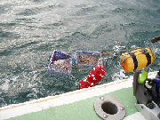 船横付けで手渡しかと思ったが、カゴに入れて海に流した物を回収。