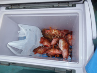 あまりに重いのでタコかと思ったら、25p超のカサゴが上がってきた。