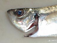 エラの付根の部分に指を通し、引き千切るように切断します。
