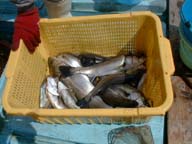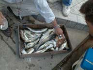 釣り客が釣った魚と船頭さんが釣った魚をひとまとめにして、すべてを公平に分けます。