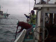 そして釣った魚をカンコ(船のイケス)に入れて活かしておきます。