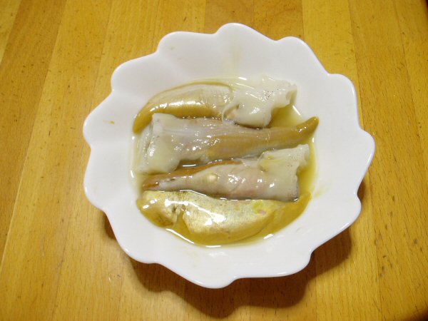 冷蔵庫から取り出したキモを再度日本酒で塩を洗い落とします。