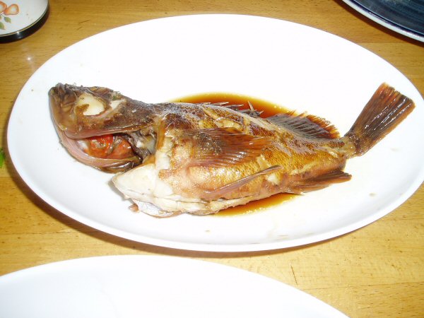 刺身でも食べれる釣りたての魚を軽く蒸焼きにする。