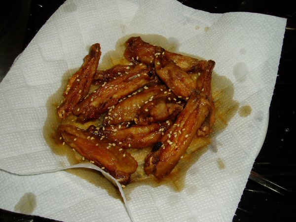 余分なタレを取り、ゴマをふりかけます。