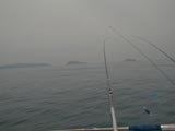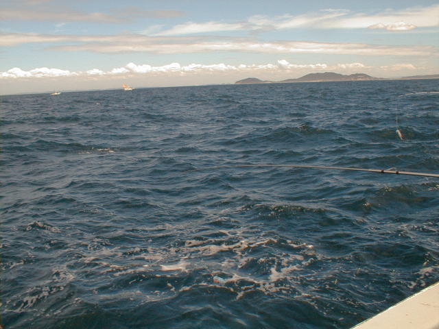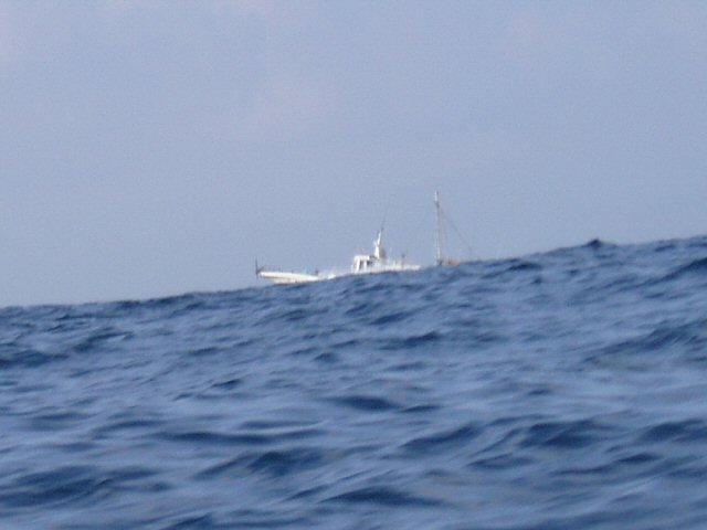 予報のウネリが300pの時の実際の外海(太平洋)の海上の様子です。 運良く・・と言うか、大型の台風が接近している時に釣りに出ました。 @はウネリが無い時。 ナギの状態となんら変わりなし。 Aウネリが来ると・・・。 だんだんウネリがやって来ます。 この後、船の後部のマスト部(スパンカーの先っちょ)も波の下に消えました。 早い話、波に消されて船はまったく見えなくなりました。 3mのウネリと言うとこんな物でしょう。 ちなみに乗っている船は、フゥワァ〜っと浮き上がり、フゥワァ〜っと沈みます。 慣れると揺りかごみたいに気持ちがイイです。 |