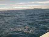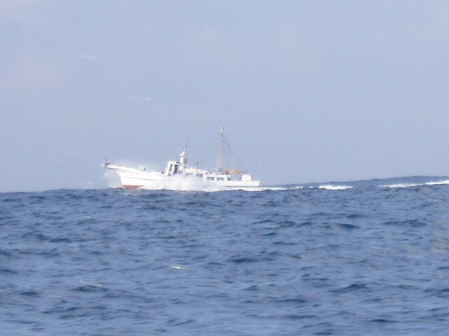 予報波高が150pの時の実際の内海(伊勢湾)の海上の様子です。 残念ながら、その状態で私には写真を取る余裕は有りません。 もし、マトモな状態でいられれば取ってきます。 目視観測では、常時100p程度の波高が有ります。 150p前後の波もけっこう来ますし、当然それ以上大きな波も。 船は左右前後に大きく揺れ(ローリング、ピッチング) 物につかまっていないと立ってられません。 この波高では私はいつも船酔いしています。 当然、逆噴射を何度も経験してます。 |