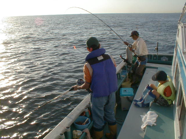 予報波高が50pの時の実際の内海(伊勢湾)の海上の様子です。 @は完全な「ベタナギ」です。 Aもベタナギみたいなものです。 この2つの波なら、オマツリを解いていても、下を見ていても、まず酔いません。 Bは少し風が有りました。 それでも乗合船は揺れません。 この程度の波では、よほど体調でも悪くない限り船酔いはしません。 ただ、長時間のオマツリ解きは厳しいかも。 目視観測では、波が無いか、有ってもさざなみ程度です。 たまに50pの波高が有り、100pの波高も1回の出船で数発はやって来ます。 |
