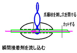 その穴にハリス止めの環の部分をねじ込む。