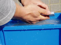 表面の削り粉を洗う