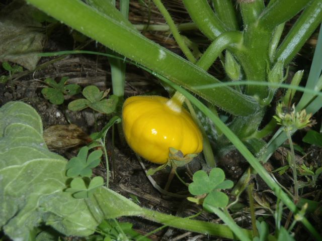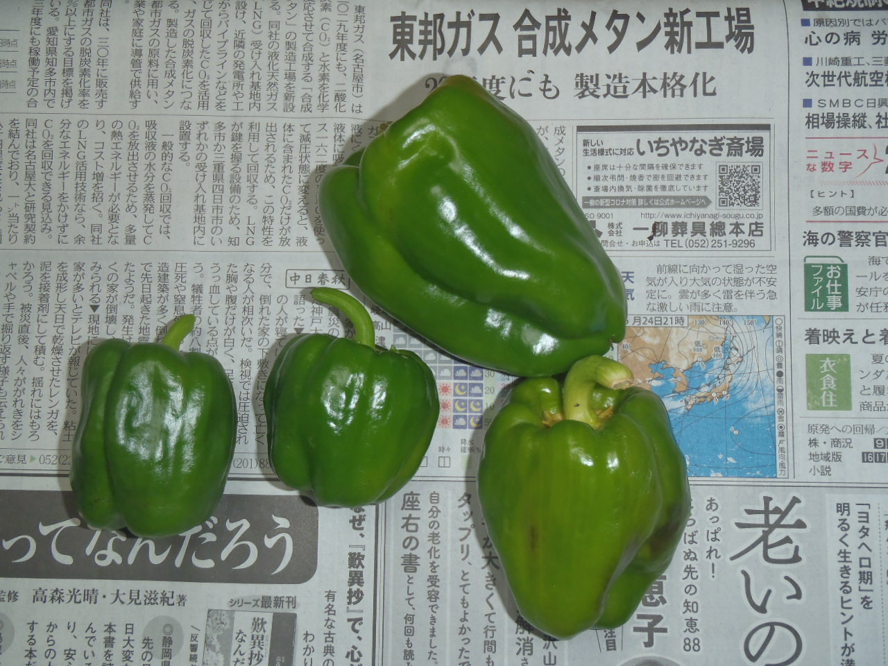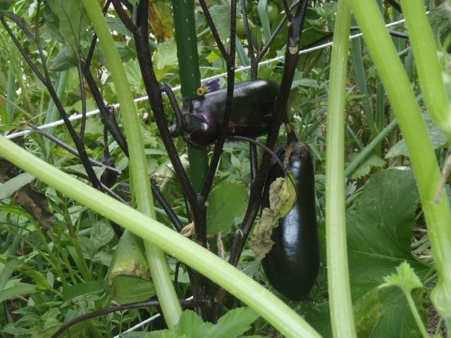 ナスとピーマンの間の隙間に植えてあるから密林状態。