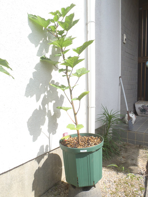 今年の新梢がどんどん伸びて6号鉢では支えきれない感じになって来ました。