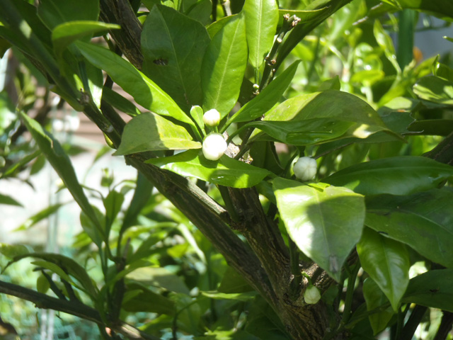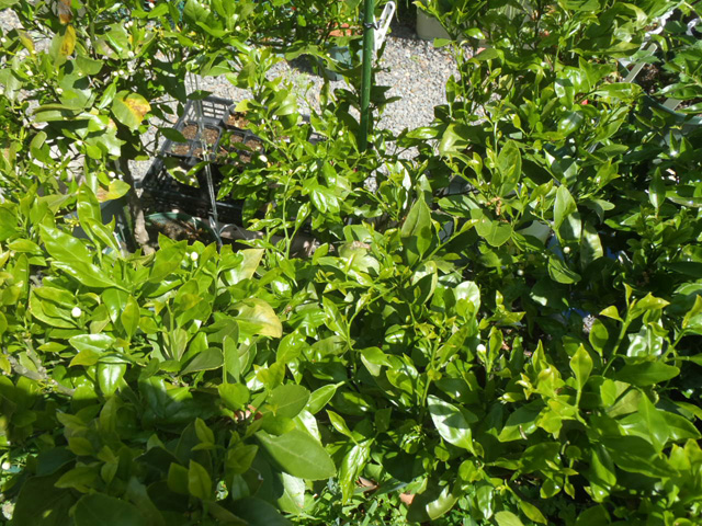 特定の枝に多く蕾が有るため、蕾が無い枝は先々切り落とします。