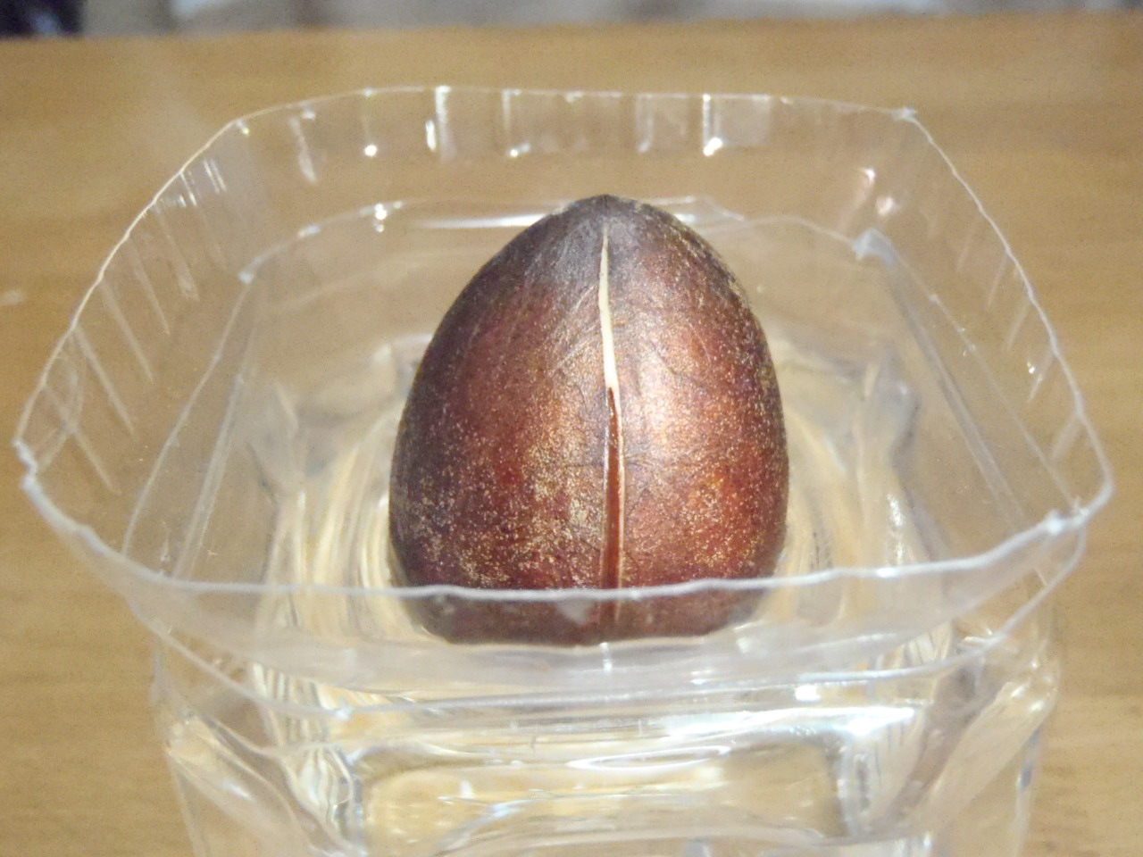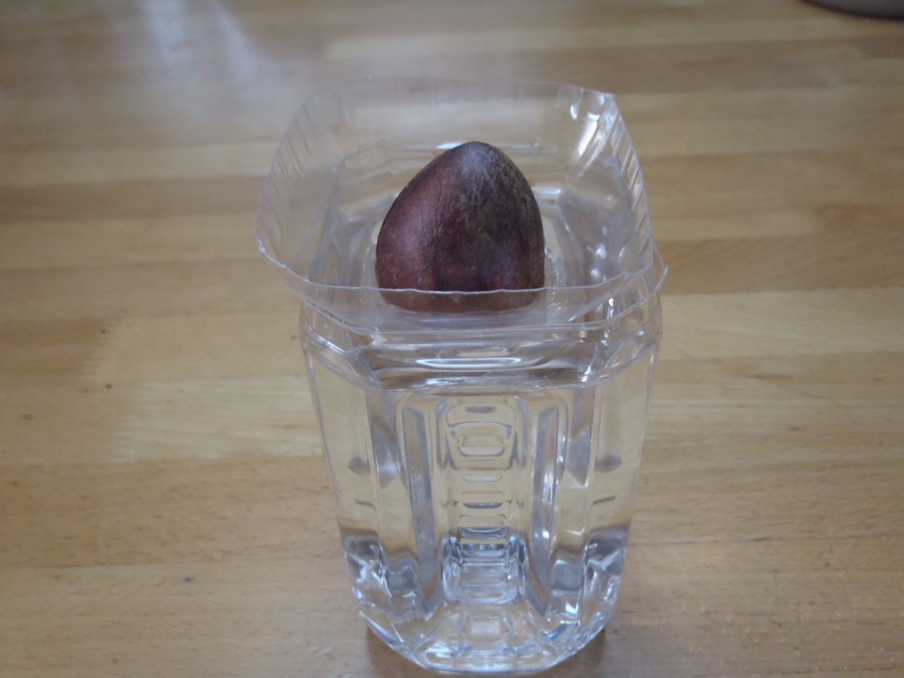 12月はじめに食べたアボカドを水耕栽培で芽出しを行っています。