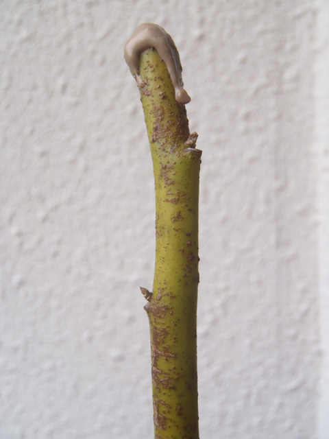 葉っぱを残すか迷ったけど、葉っぱの下で切ることに。