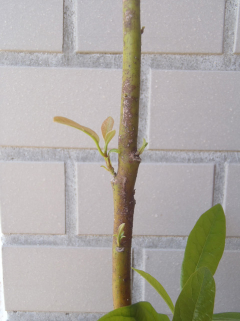 冬越しで葉っぱが落ちてるし、ひょろいです。