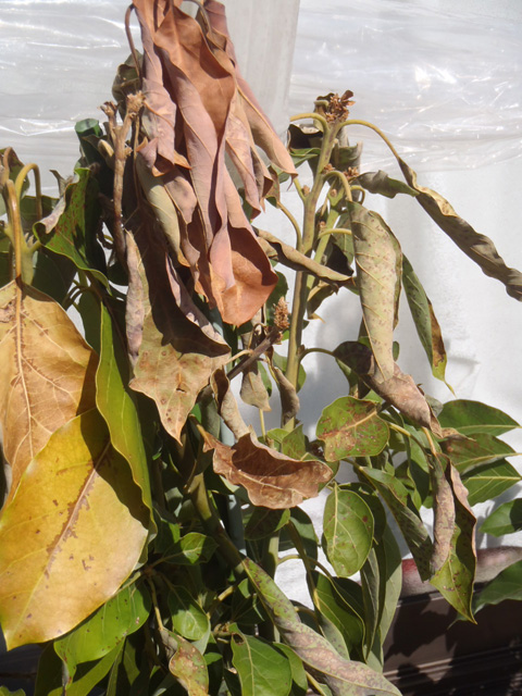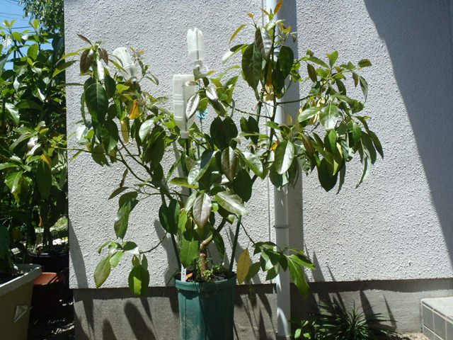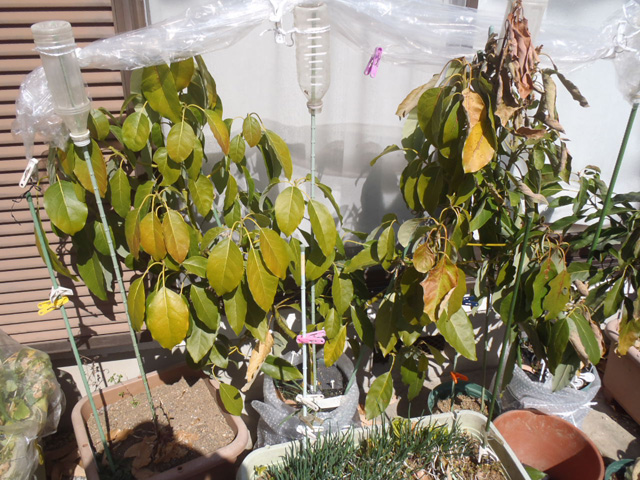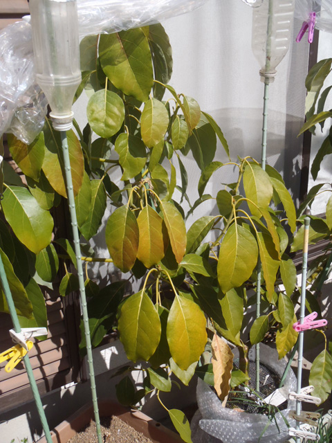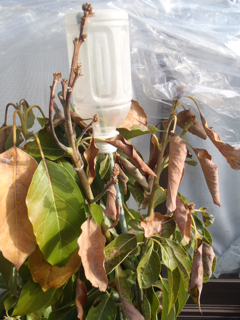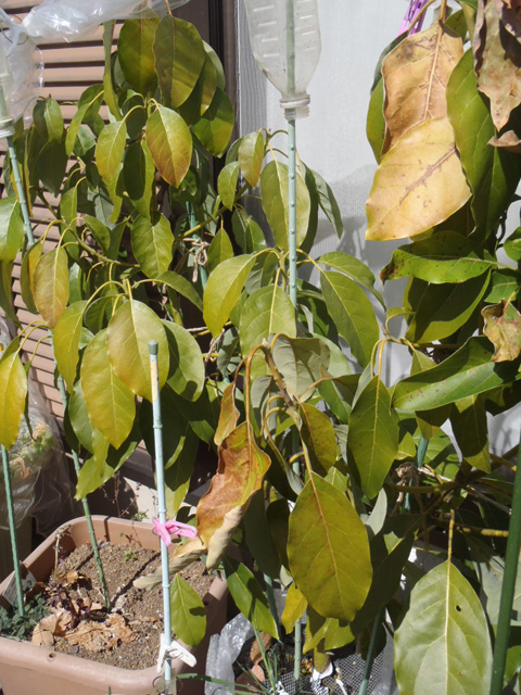 アボカド(ウィンターメキシカンとフェルテ)の防寒(冬越し)の様子です。