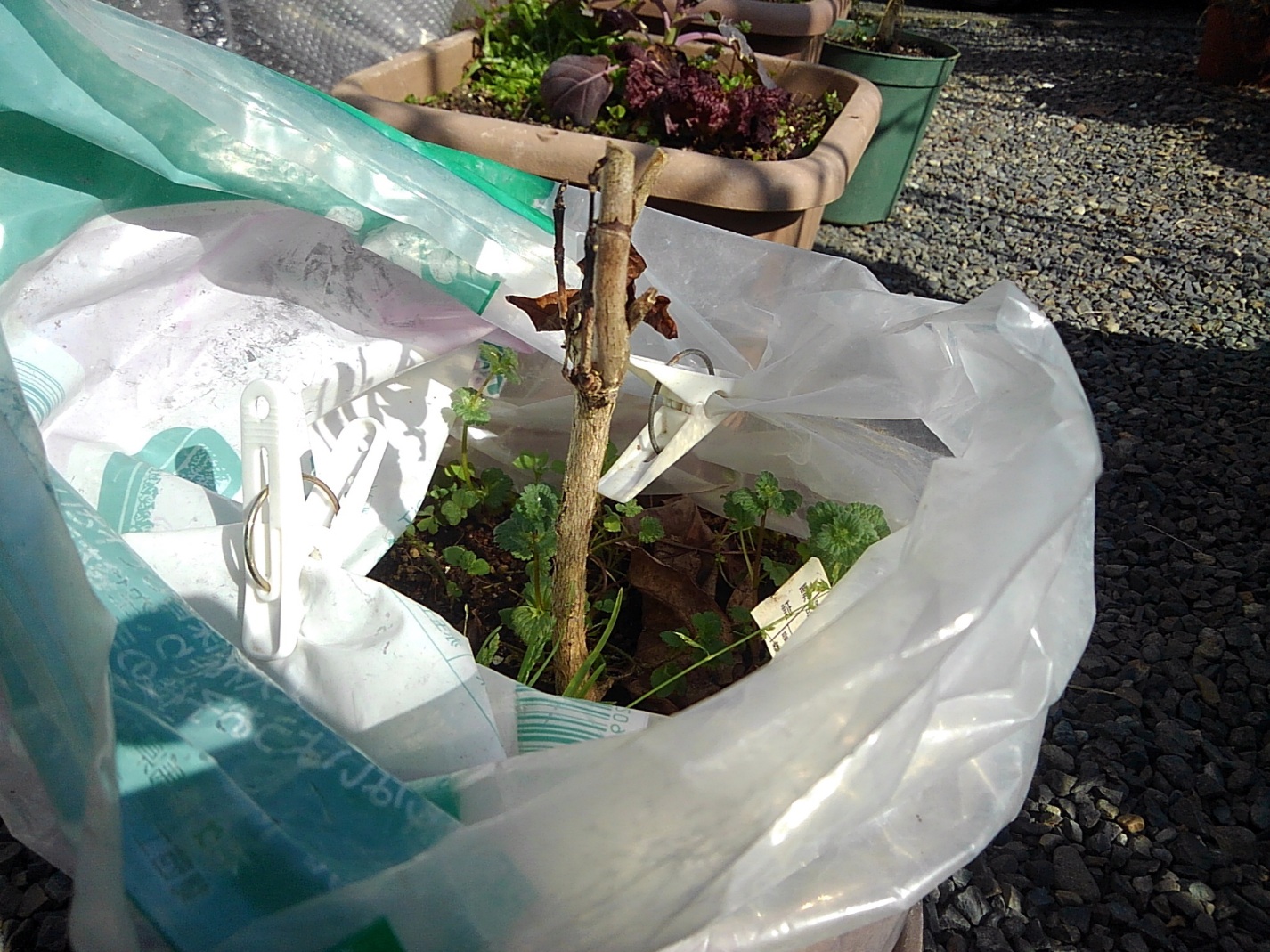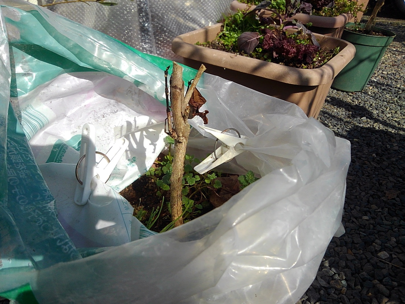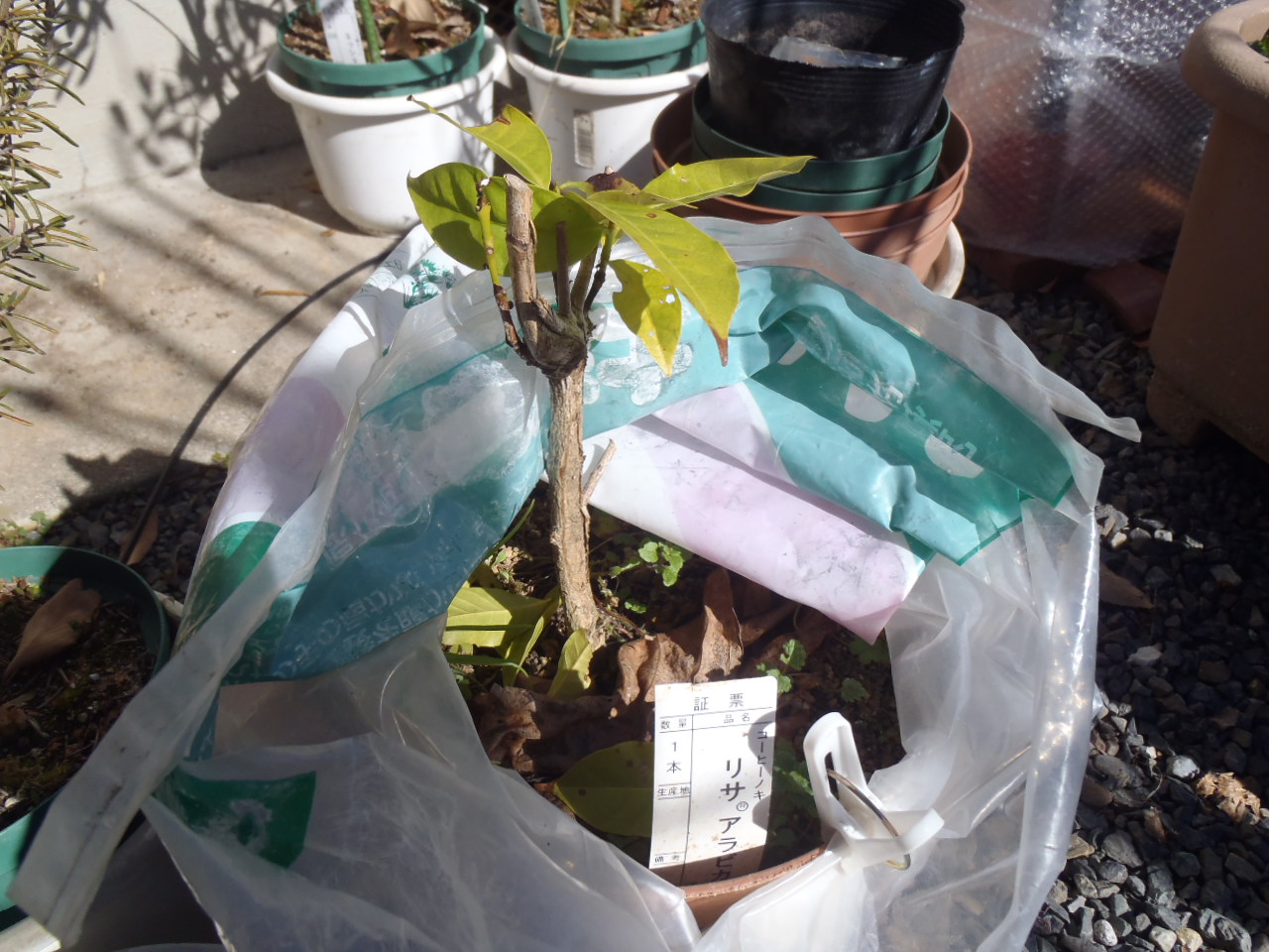 とりあえず、まんだ活きてる。 去年も1月いっぱいは枯れずにいたが・・・。 夜は、玄関内にプチプチにくるんで置いている。 |